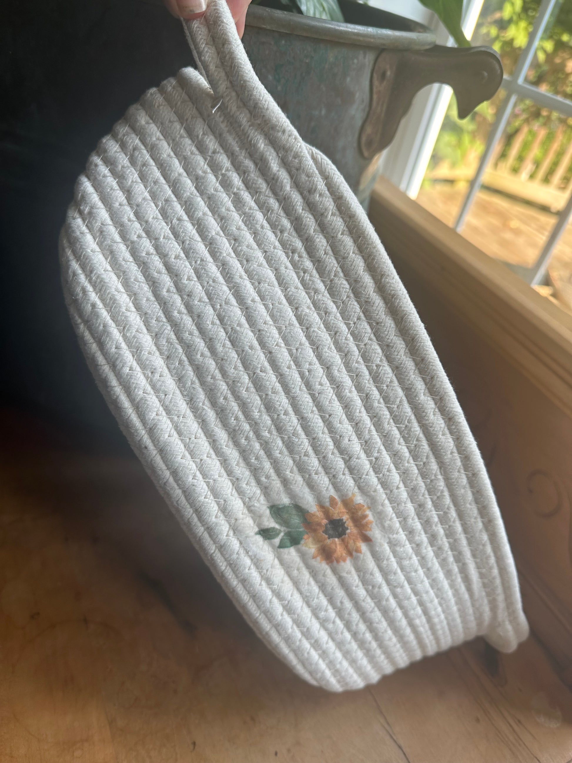 Spot Clean only. Decoupaged decoration will have different texture than cotton basket.