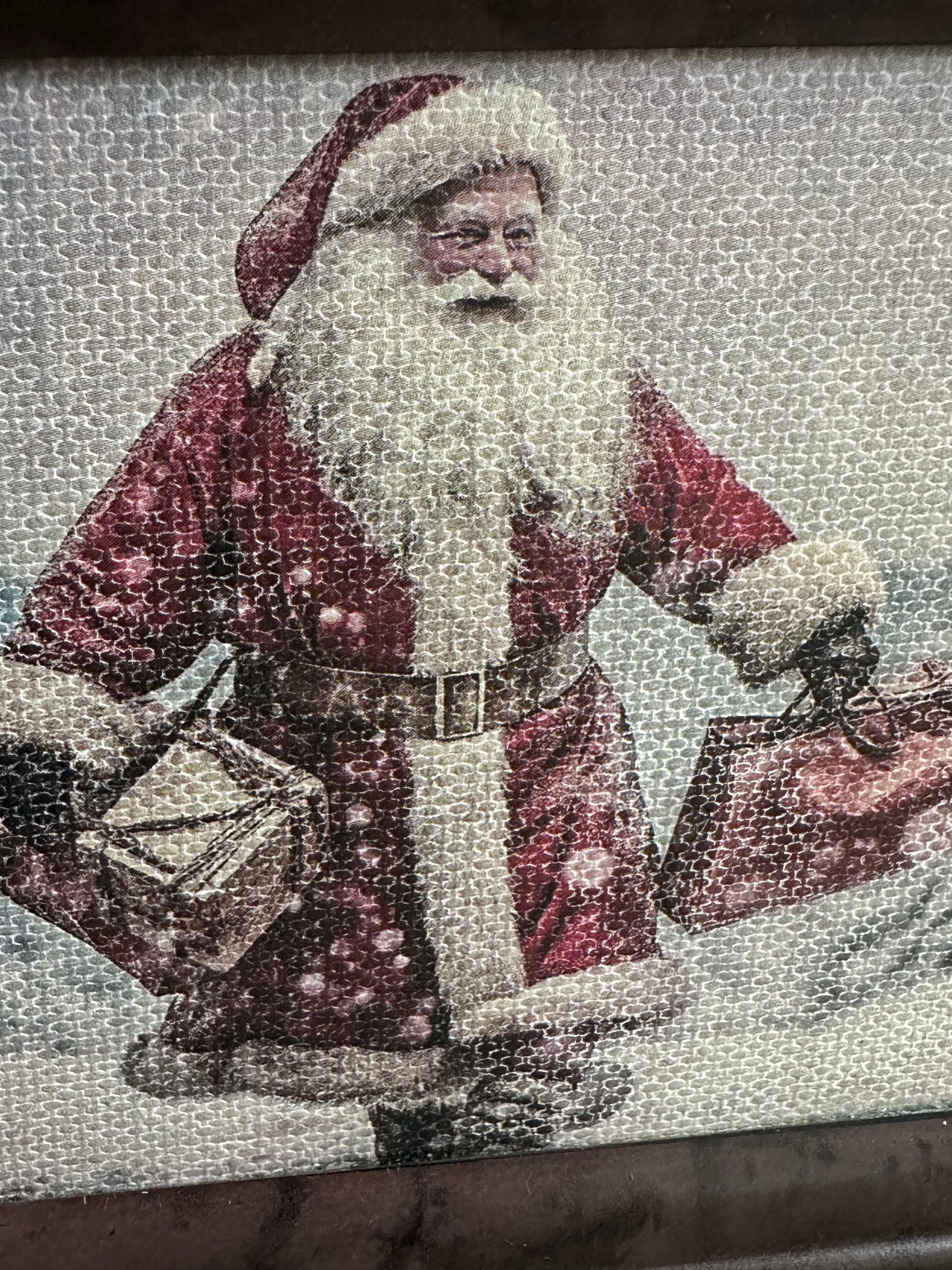 Sweet decor for your favorite shelf. Photo on recycled textured canvas in salvaged metal frame. Canvas exposed and not behind glass.