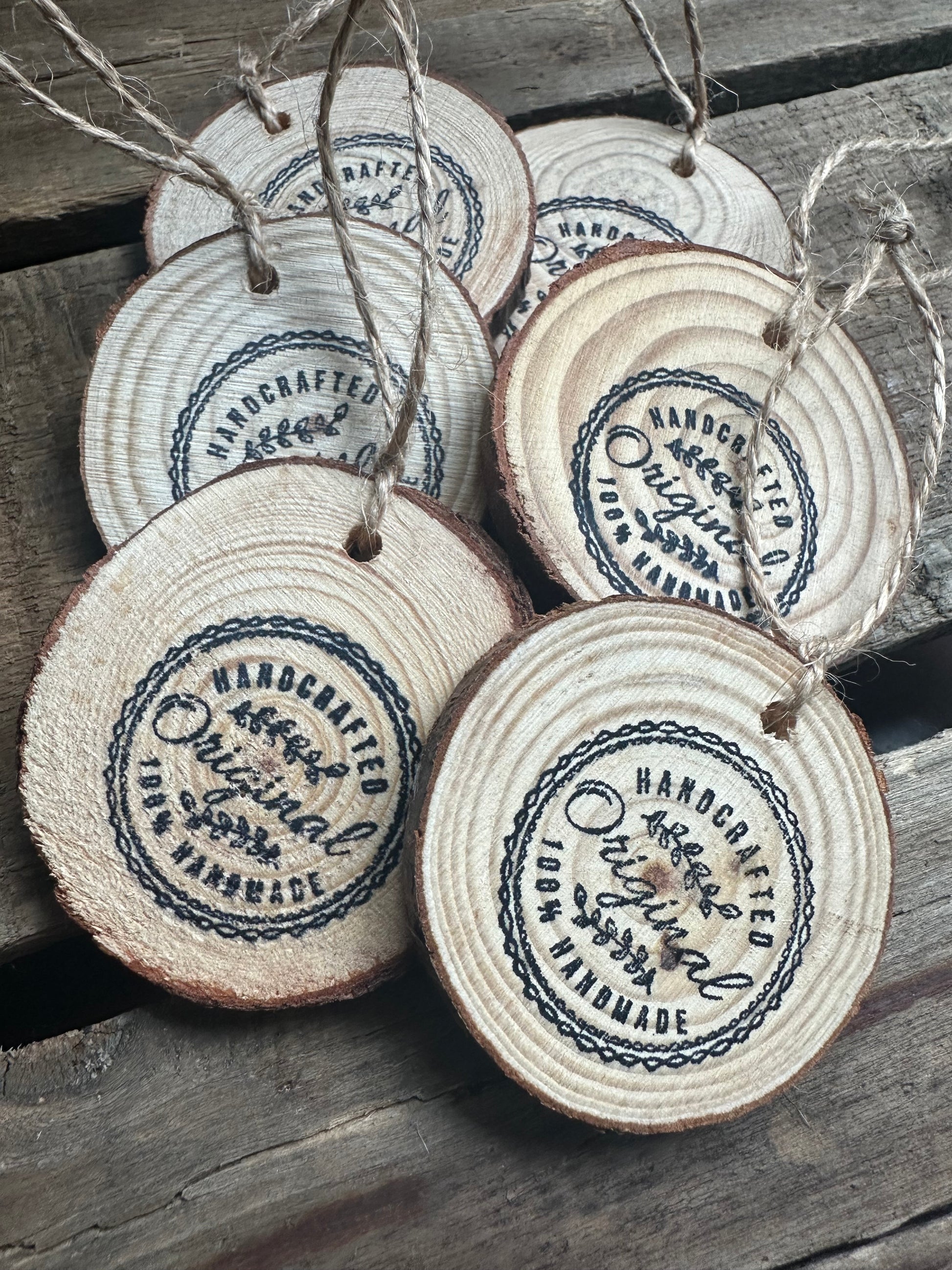NOTE: this is a SET of 2 small wood slice ornaments. I will select one set of this style design for your order.